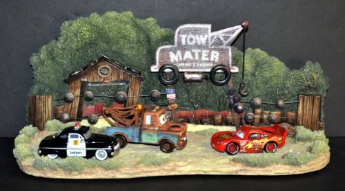 Playscapes© by OlszewskiUpdated: January 20, 2014 Playscapes© by Olszewski has been created by Olszewski to provide collectors a way to display figurative art. These themed designed displays can be mounted on a wall or can stand alone. The first two created were scenes from the Disney film Cars: Tow Mater and Piston Cup Stage. This product line was introduced in August 2013 at the Disneyland Park stores for the first time. The displays are configured to wall mount or stand alone on a table or shelf.
